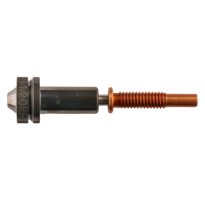 Die HF HT-A Düsen kombinieren eine gehärtete Stahlspritze mit Kupferträger und -verteiler, wodurch eine hervorragende Wärmeübertragung erreicht wird. Die Chromnitrid-Beschichtung schützt zusätzlich vor Abrieb, Korrosion und Anhaften von Filament. Durch das High Flow Design steigt die Schmelzrate deutlich – perfekt für großvolumige oder schnelle Drucke mit technischen Materialien.