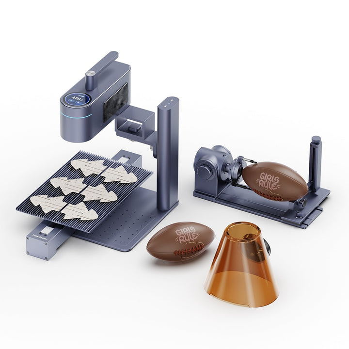 LaserPecker LP4 kombinerar en 10 W blå diodlaser med en 2 W IR-laser (1064 nm) i en kompakt, bärbar enhet. Detta gör det möjligt att exakt gravera eller skära både organiska material som trä, läder och akryl samt metaller och vissa plaster. Med hög hastighet, knivskarp upplösning och valfritt utökningsbart arbetsområde är LP4 perfekt för personliga produkter, kreativa projekt, prototyper och småskalig produktion.
