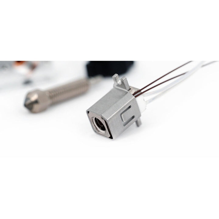 Das Hotend verfügt über einen bi-metallischen Wärmebrecher, der eine Kupferaußenschale mit einem Edelstahlkern kombiniert. Dieser scharfe thermische Übergang verhindert Wärmeaufstieg und fördert einen zuverlässigen Filamentfluss. In Kombination mit der FlowTech-internen Geometrie ermöglicht es eine reibungslose Extrusion mit minimalen Verstopfungen oder Druckschwankungen.