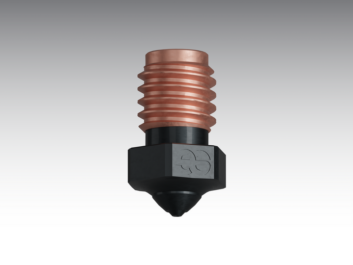 Die Silicon Carbide Düse erfüllt alle Druckanforderungen, egal ob Sie mit normalem PLA, PEEK oder sogar mit kohlenstofffaserverstärkten Materialien arbeiten. Hergestellt aus 99,9% hochreinem Siliziumkarbid, bietet die Düse eine hohe Temperaturbeständigkeit und außergewöhnliche Verschleißfestigkeit. Dies gewährleistet eine lange Lebensdauer von bis zu 550 Druckstunden, ohne dass es zu Abnutzungen an der Düsenöffnung oder der Düsenspitze kommt.